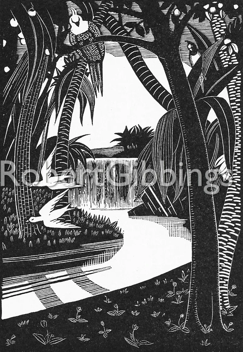 During his time at the Golden Cockerel Press from 1924-1933, Gibbings produced some of the finest books of the private press movement of the twentieth century. He commissioned and collaborated with leading artists of his generations such as Eric Gill, Eric Ravilious, John Nash, Agnes Miller Parker and Noel Rooke. He published some 71 titles at the press including the ‘Four Gospels’ (1931) and the four-volume ‘Canterbury Tales’ (1929-1931), both illustrated by Eric Gill. Both books were critical and financial successes and are considered masterpieces of book design and production.